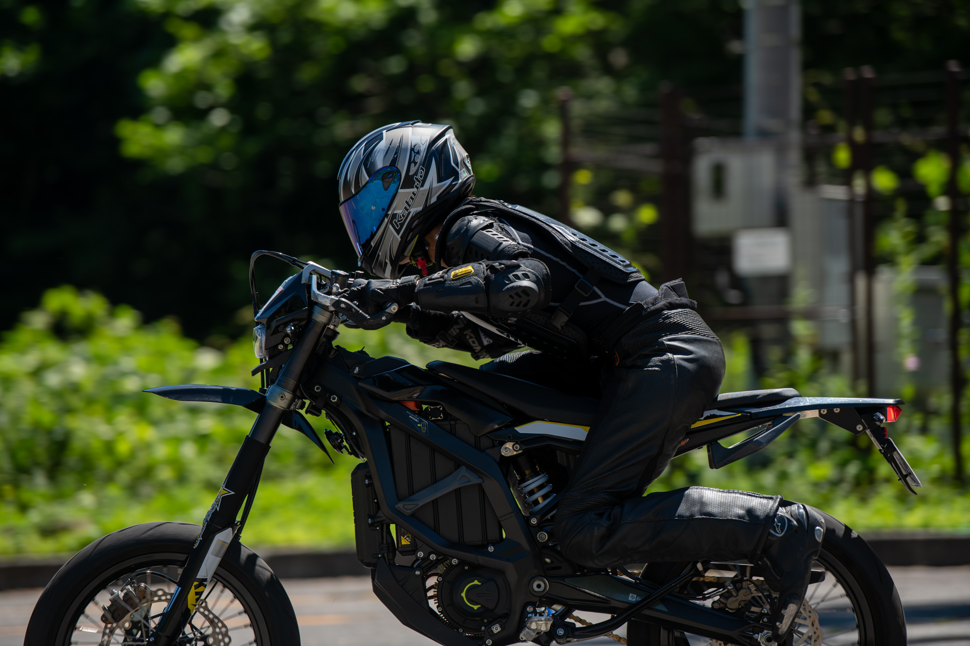 膝カップ入りの革パンやライダースパンツがお勧めです。