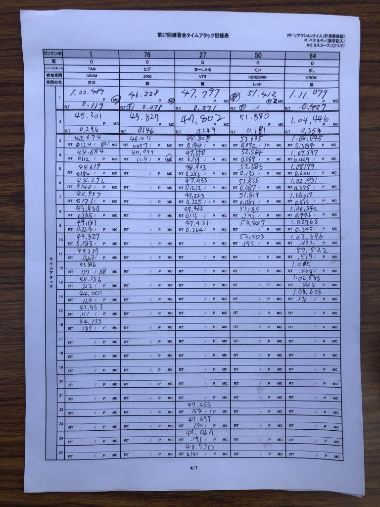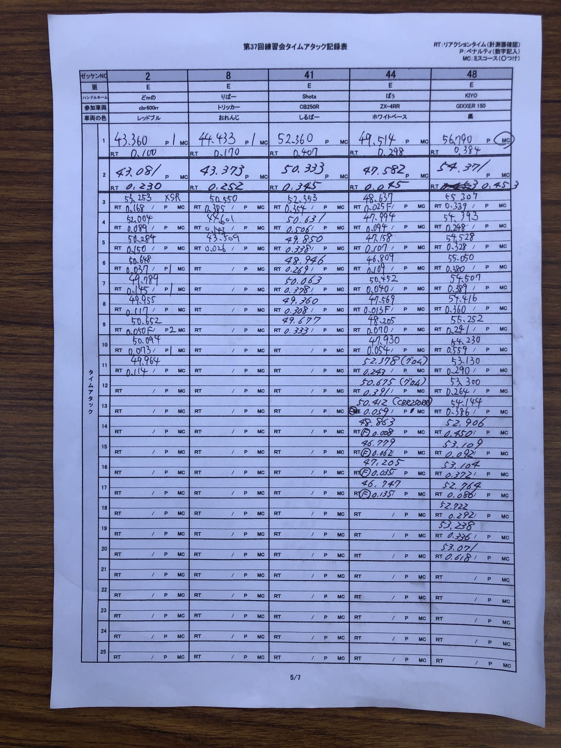 | 25 | てい | CBR250RR | レッド | 51.412 | 2 | 51.880 | 51.880 | 120.424% | ||