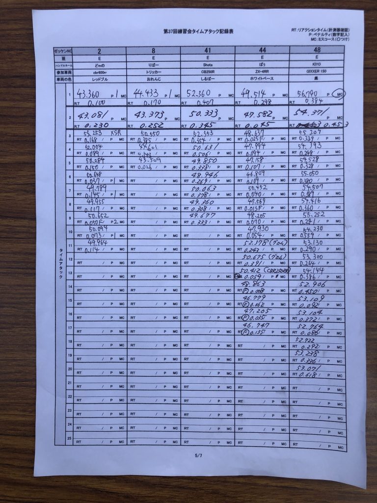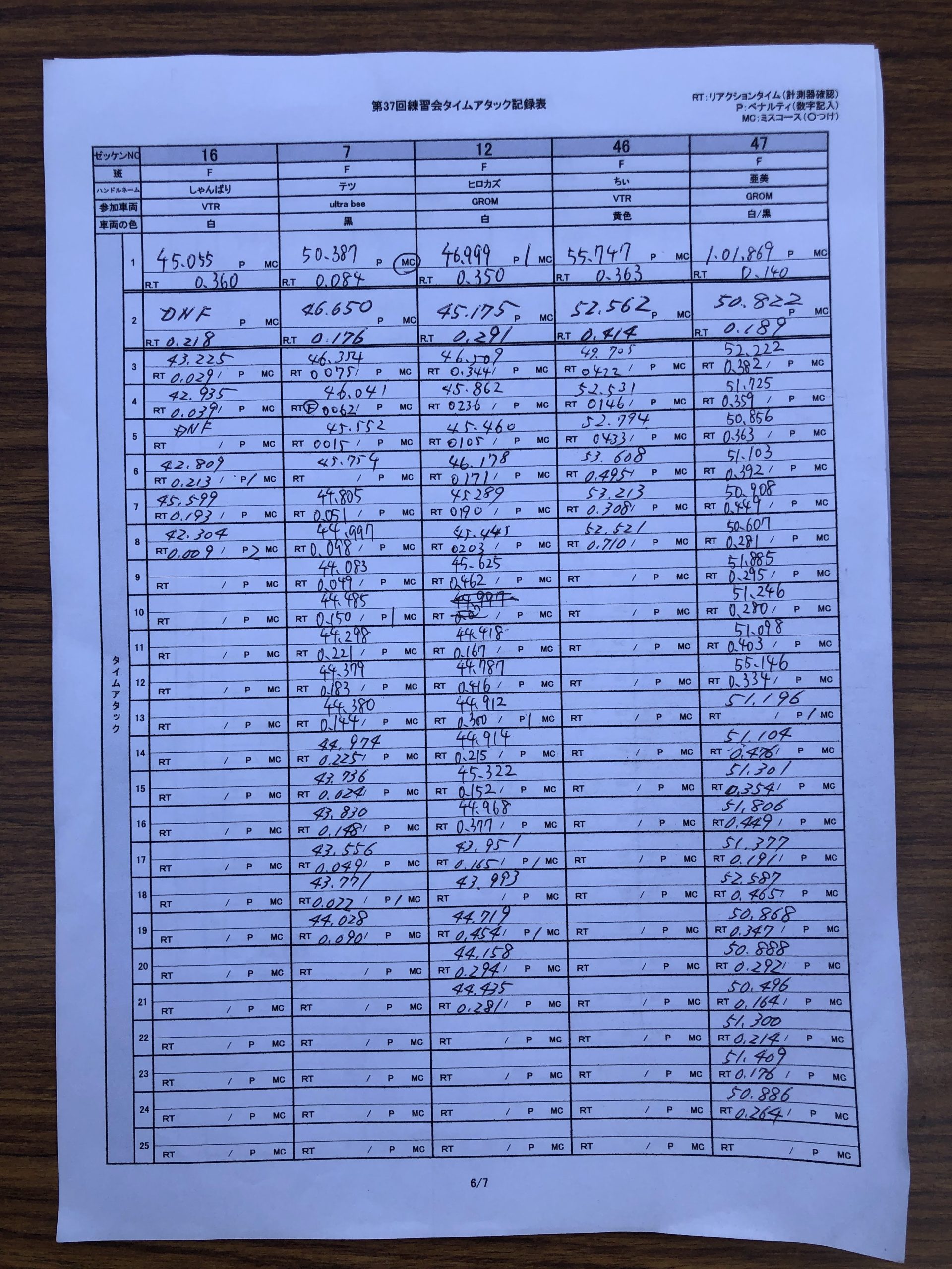 | 5 | ヒロカズ | GROM | 白 | 46.999 | 1 | 45.175 | 45.175 | 104.861% | 11 | |