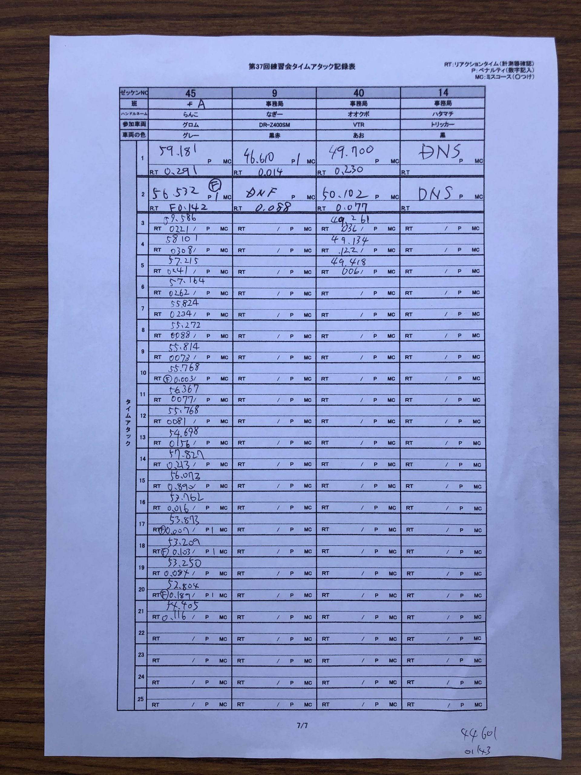 | 計測について | 大会形式でタイムアタックコースの計測を行います。 ・コースは当日受付時に配布書類にて公開 ・2ヒート制にて走行、計測 ・定められた時間内に各自コースウオークを行う ・参加者を複数班に分けて、班ごと走行時間と業務時間を設定 ・計測時は業務班によるペナルティ確認、計測記録、マーシャルを行う ・計測時はクローズアップ動画および俯瞰動画を撮影 |