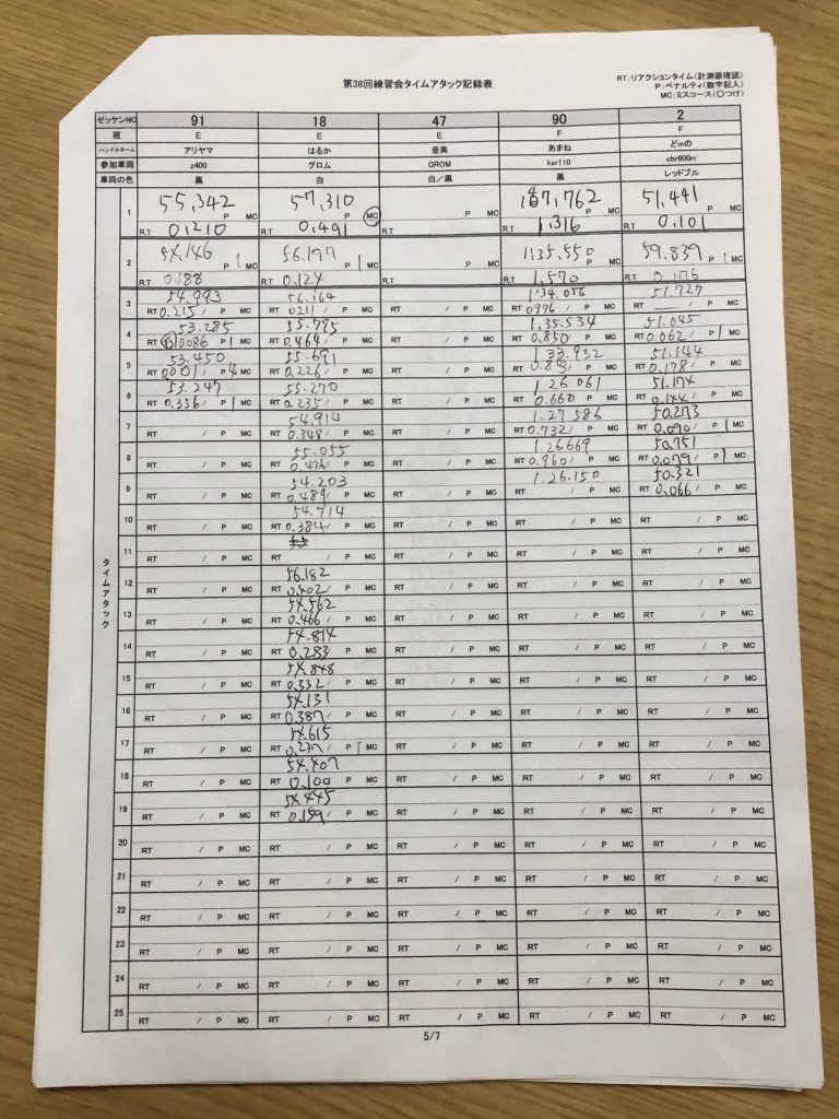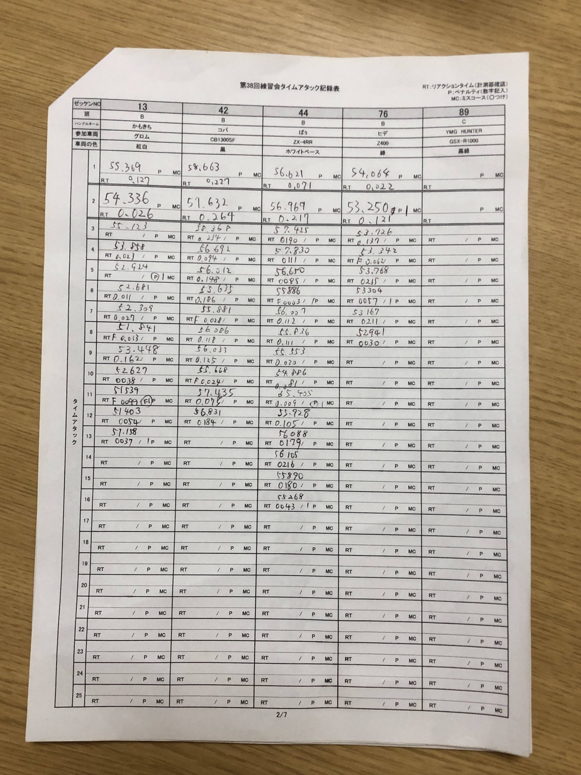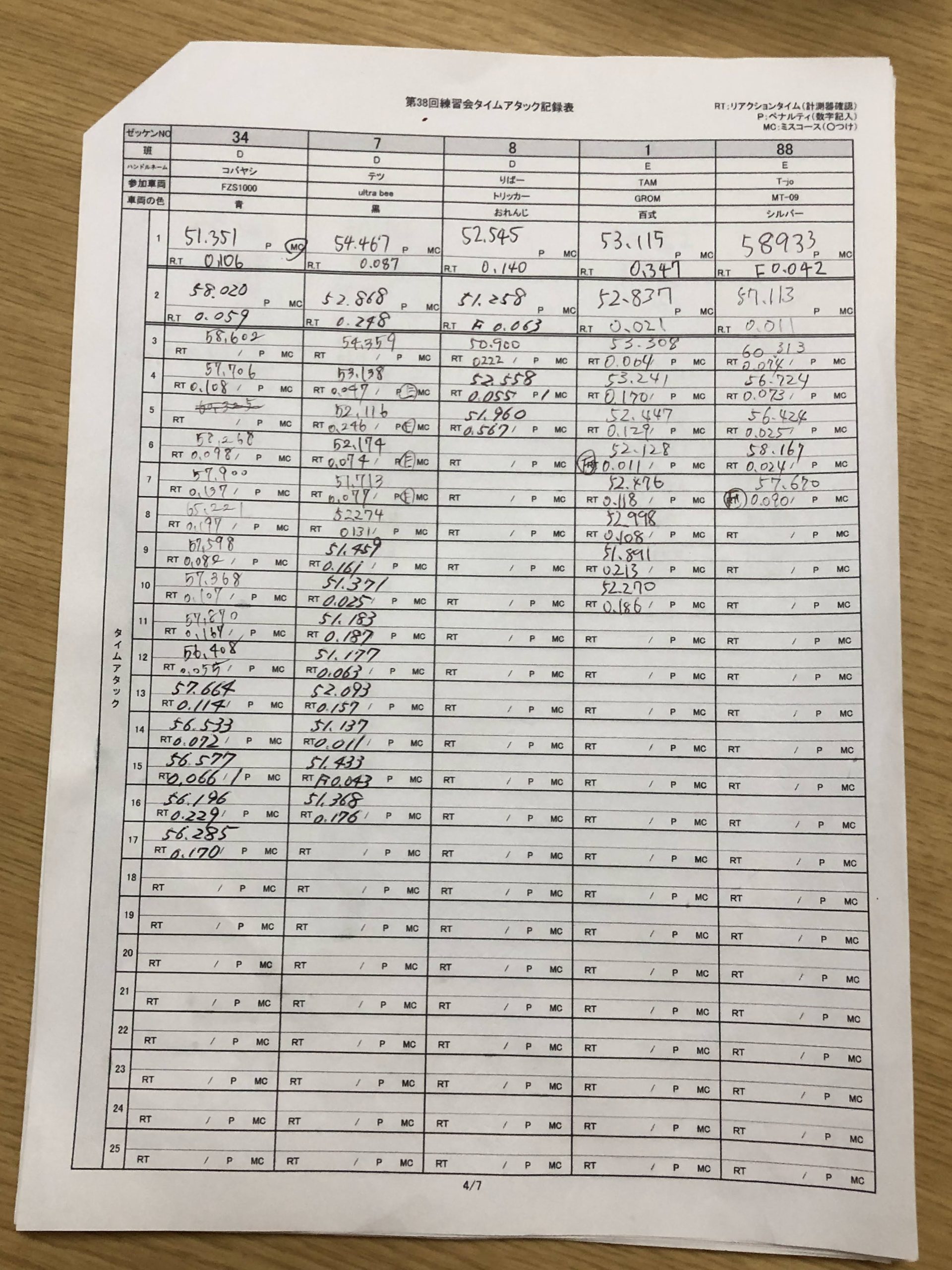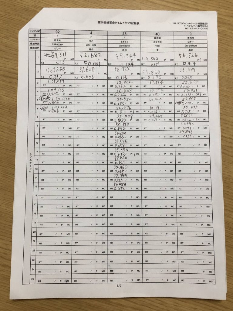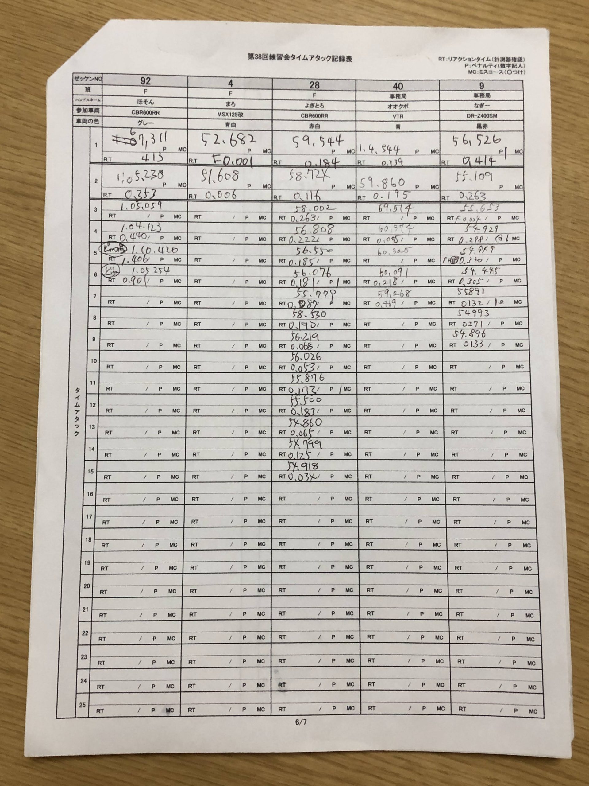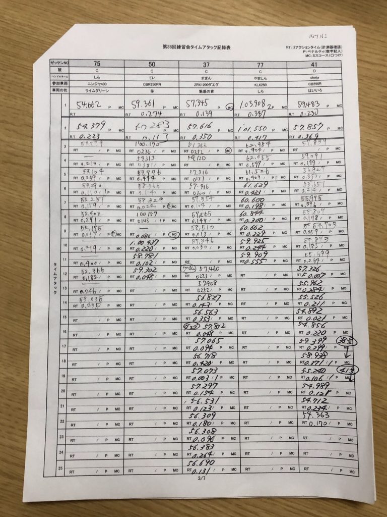 | 17 | てい | CBR250RR | 赤 | 59.361 | 57.283 | 57.283 | 111.357% | |||