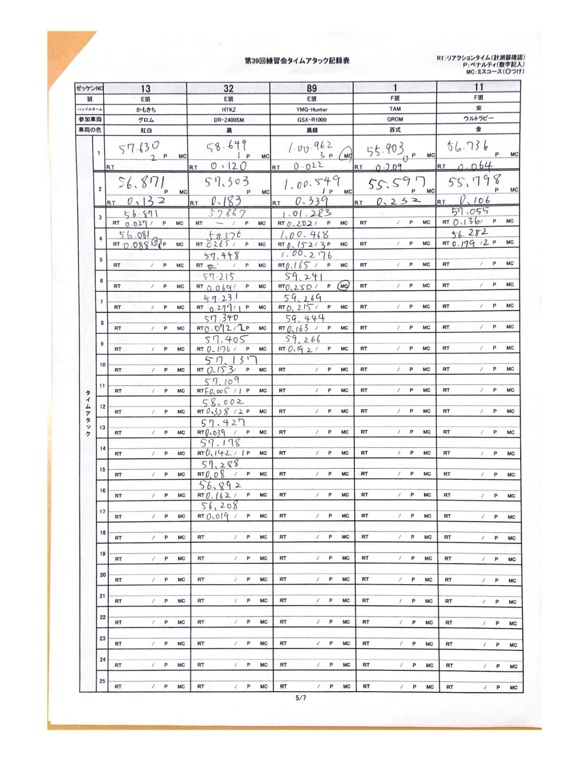 | 16 | YMG-Hunter | GSX-R1000 | 黒緑 | 999.999 | 60.549 | 1 | 61.549 | 110.706% | ||