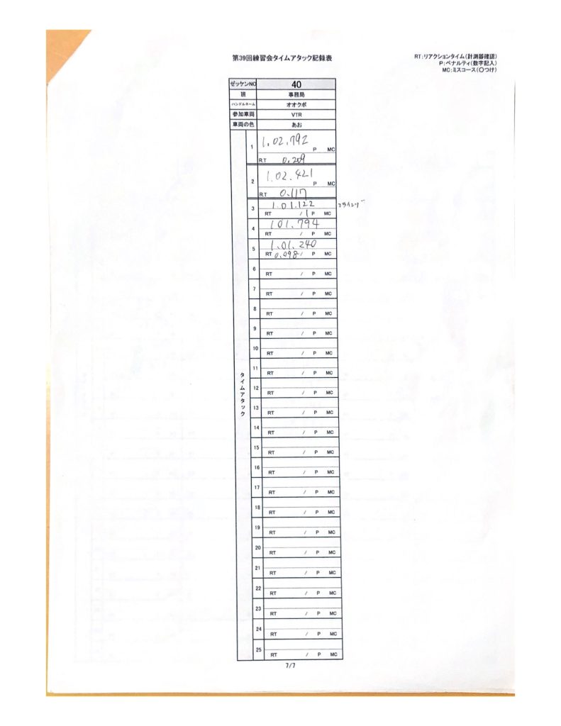 | 計測について | 大会形式でタイムアタックコースの計測を行います。 ・コースは当日受付時に配布書類にて公開 ・2ヒート制にて走行、計測 ・定められた時間内に各自コースウオークを行う ・参加者を複数班に分けて、班ごと走行時間と業務時間を設定 ・計測時は業務班によるペナルティ確認、計測記録、マーシャルを行う ・計測時はクローズアップ動画および俯瞰動画を撮影 |