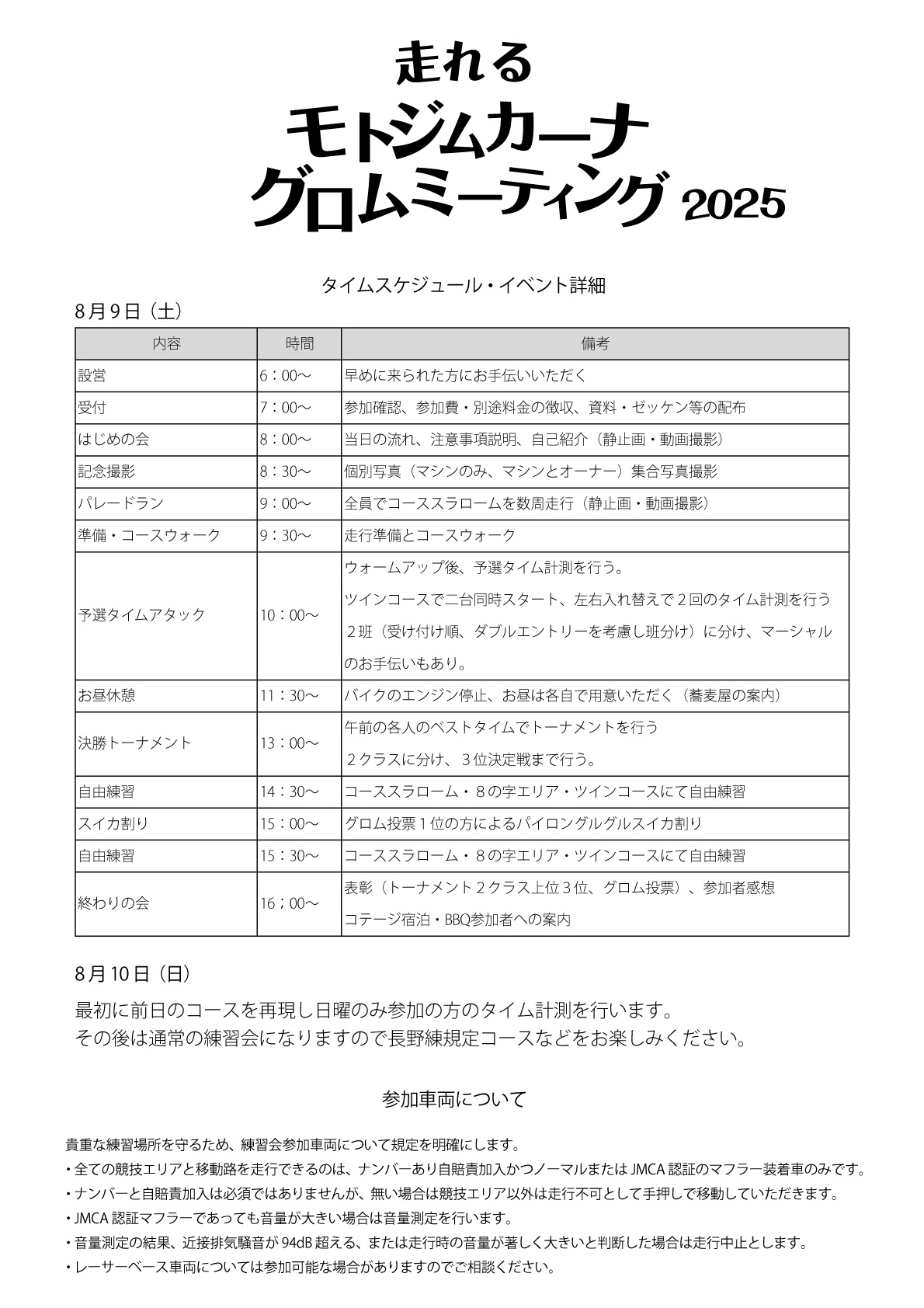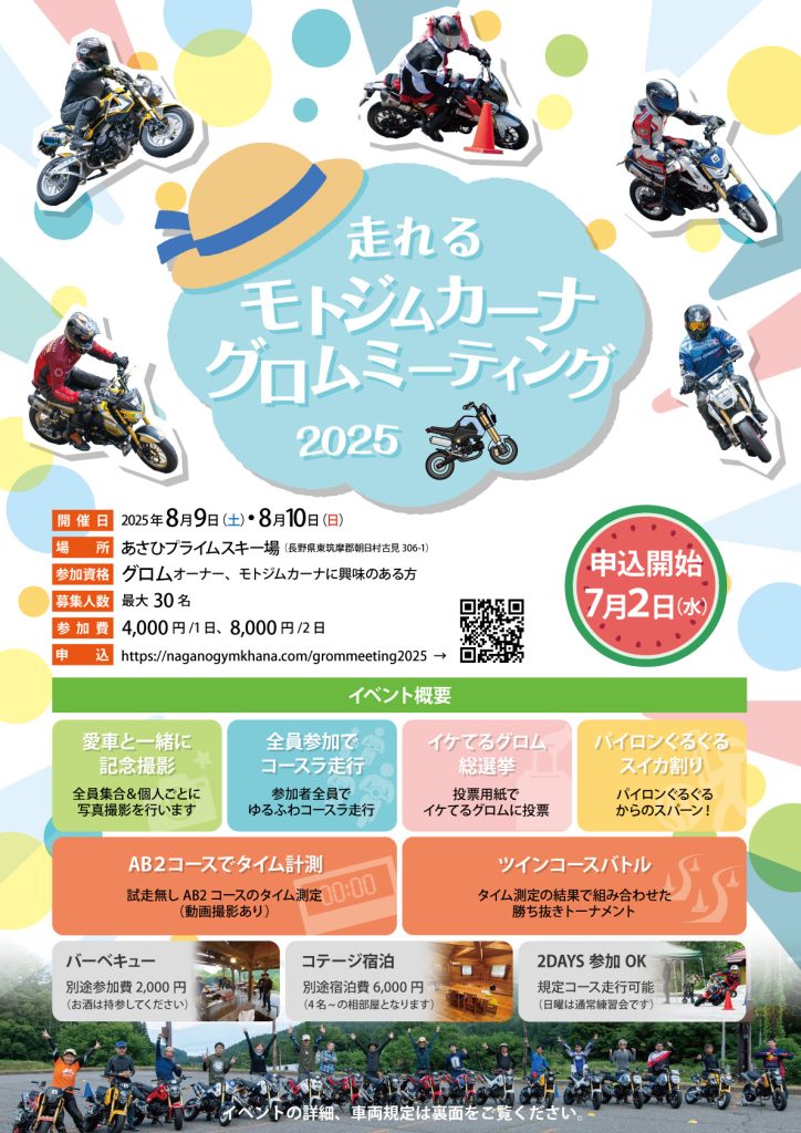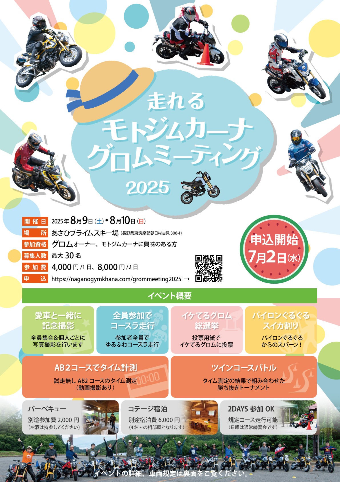 | 参加資格 | グロムオーナー、モトジムカーナに興味のある方 |